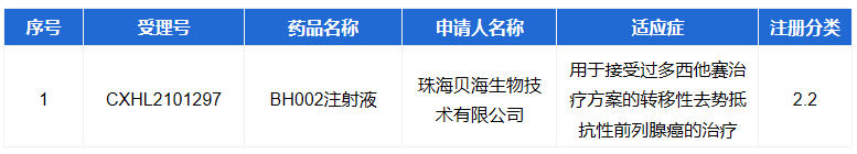 BH002是由貝海生物利用公司全球首創(chuàng)的增溶技術(shù)平臺(tái)自主開(kāi)發(fā)的卡巴他賽創(chuàng)新品種,目前無(wú)任何卡巴他賽產(chǎn)品在中國(guó)上市,BH002臨床前研究數(shù)據(jù)顯示,BH002可顯著提高抗腫瘤活性及臨床安全性,具有極好的臨床轉(zhuǎn)化前景,有望提高患者的生存率,改善患者生活質(zhì)量。BH002上市后將有望填補(bǔ)國(guó)內(nèi)空白。BH002注射液將在中國(guó)晚期實(shí)體瘤患者中開(kāi)展安全性、耐受性及藥代動(dòng)力學(xué)的臨床Ⅰ期研究,評(píng)估BH002注射液在晚期實(shí)體瘤患者中的安全性,并初步評(píng)估其臨床療效。